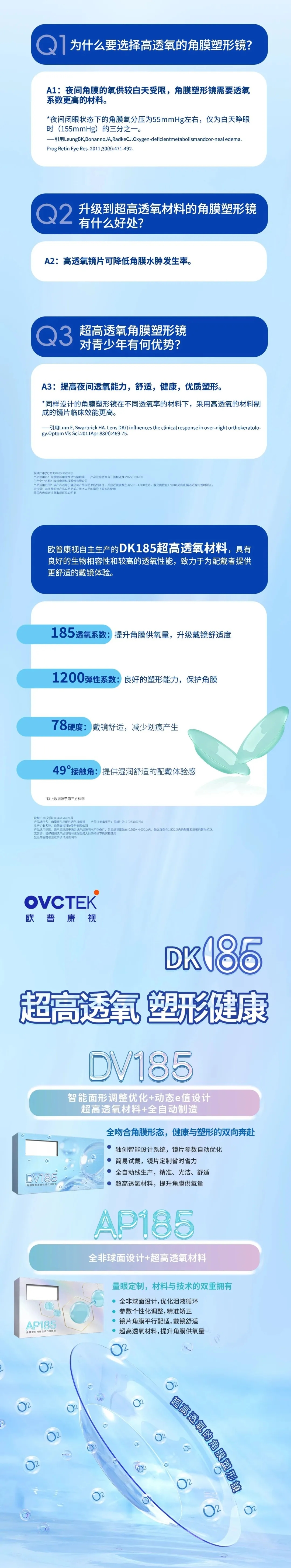 欧普康视自主生产的DK185 超高透氧材料,具有良好的生物相容性和较高的透氧性能,致力于为配戴者提供更舒适的戴镜体验。