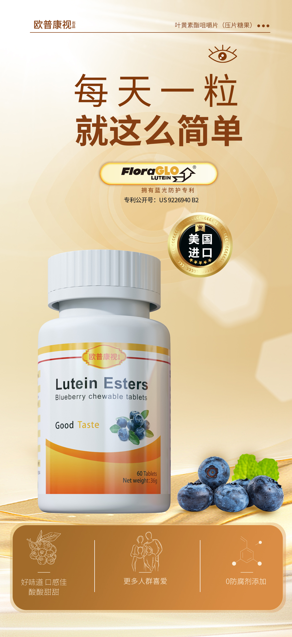 欧普康视出品蓝莓叶黄素酯压片糖果